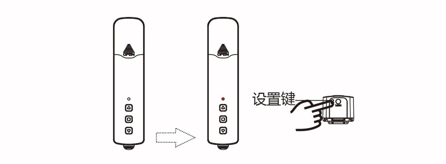 ◆長(zhǎng)按電機(jī)【設(shè)置鍵】,直到電機(jī)【指示燈】紅色閃一下,松手;