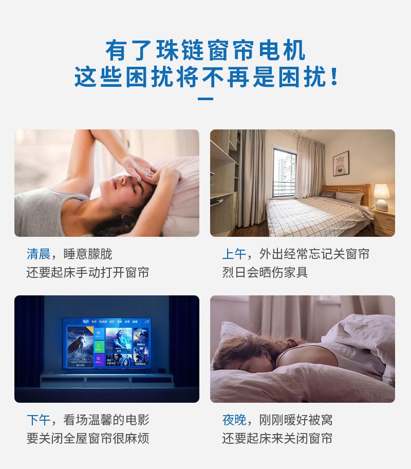 此產(chǎn)品適用于拉珠卷簾、拉珠柔紗簾、拉珠百葉簾、改變傳統(tǒng)窗簾手動拉升的情況,不換窗簾讓窗簾變得更智能便捷,可通過語音、涂鴉APP、遙控控制,讓您悅享智能生活!