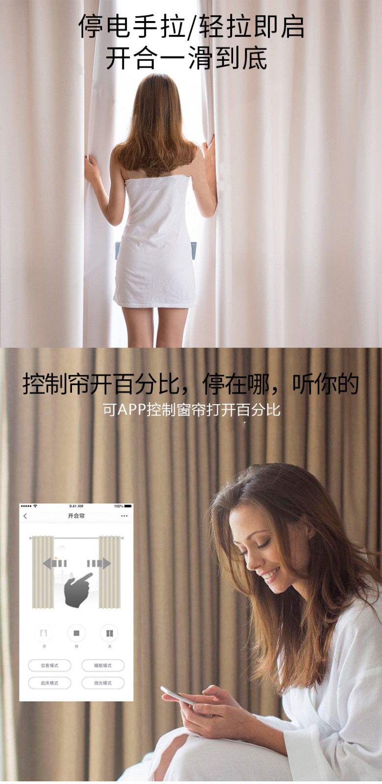 無線窗簾WIFI語音控制神器涂鴉智能電動窗簾伴侶羅馬桿窗簾助力器